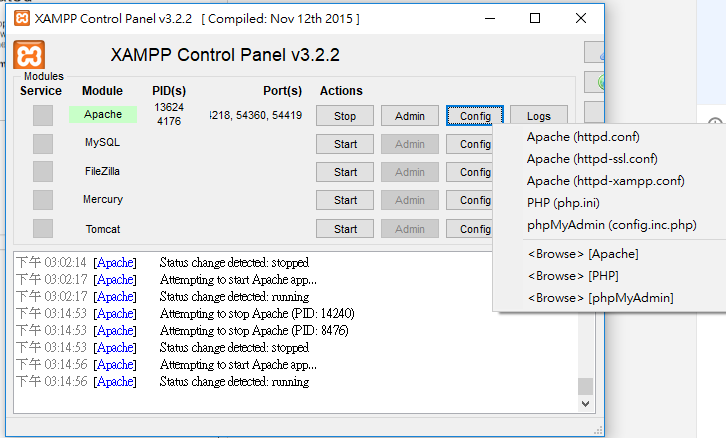 TransferLog “D:/projects/php/xampp/apache/logs/access.log”