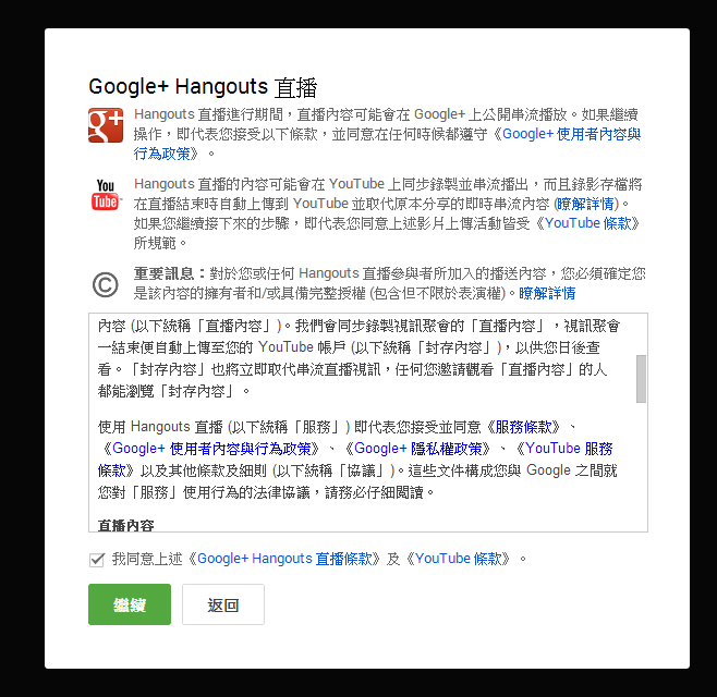 後者為直播的注意事項與條款