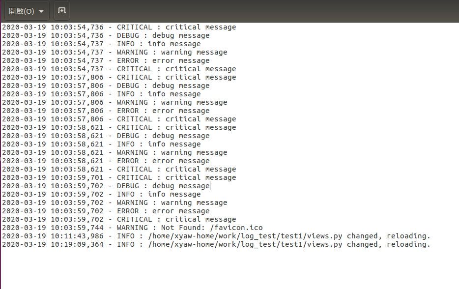 • %(levelname)s 顯示目前的等級