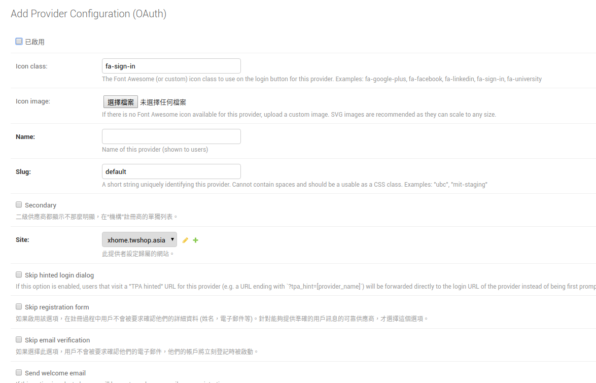 除了Google , Facebook 等等, 據說還支援了其他不少的第三方Provider, 不過預設在系統中並未列出來, 僅在官方文件有提到: 4.23.3.2.1.2. Additional OAuth2 Providers (Advanced)