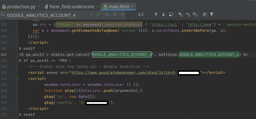 <% ga_acct1 = static.get_value("GOOGLE_ANALYTICS_ACCOUNT_4", settings.GOOGLE_ANALYTICS_ACCOUNT_4) %>