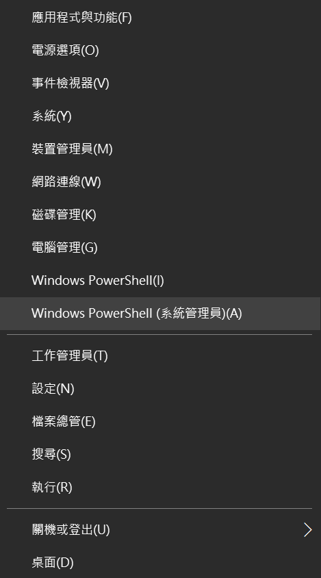 同樣在開始選單中以系統管理員執行 Windows PowerShell
